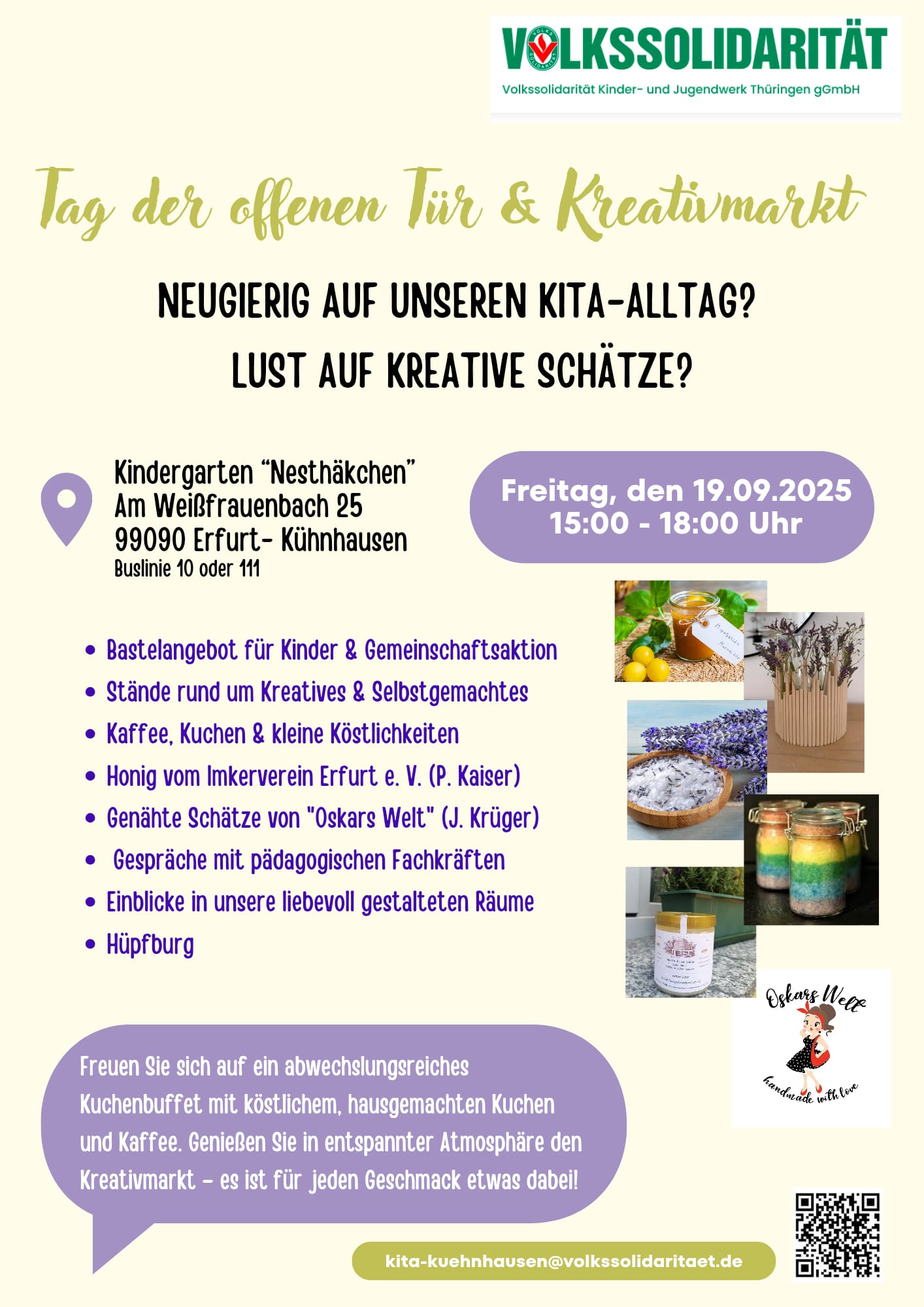 19Sep15:0018:00Tag der offenen Tür & Kreativmarkt in der Kita